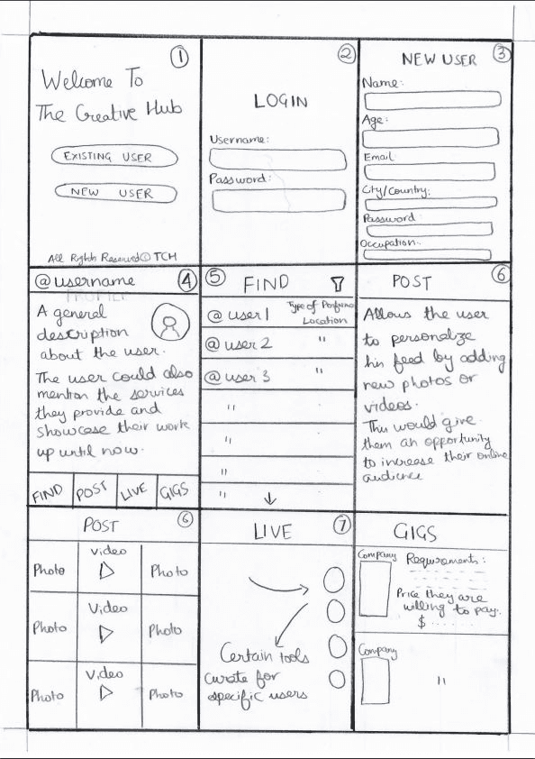 posting content, live streaming, and finding gigs. I kept the design simple, which helped evaluators complete tasks with ease. However, feedback highlighted usability improvements needed in the paper prototype.