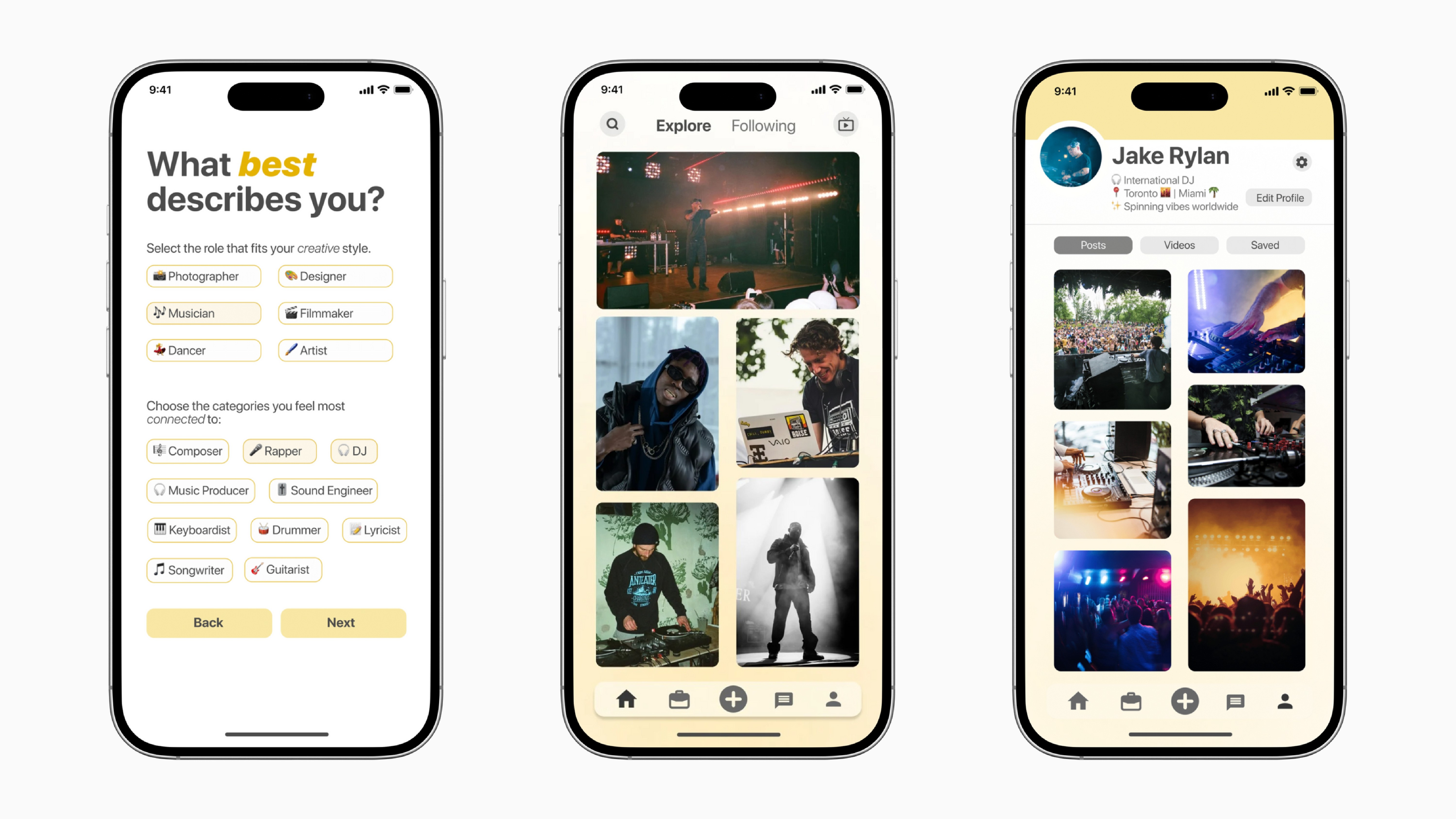 To evaluate usability, I conducted think-aloud testing with two friends from the performing arts field. They highlighted usability issues, such as confusion around posting content, particularly lacking buttons for uploading photos or videos. I addressed this by adding a clear “+” icon to streamline content creation.