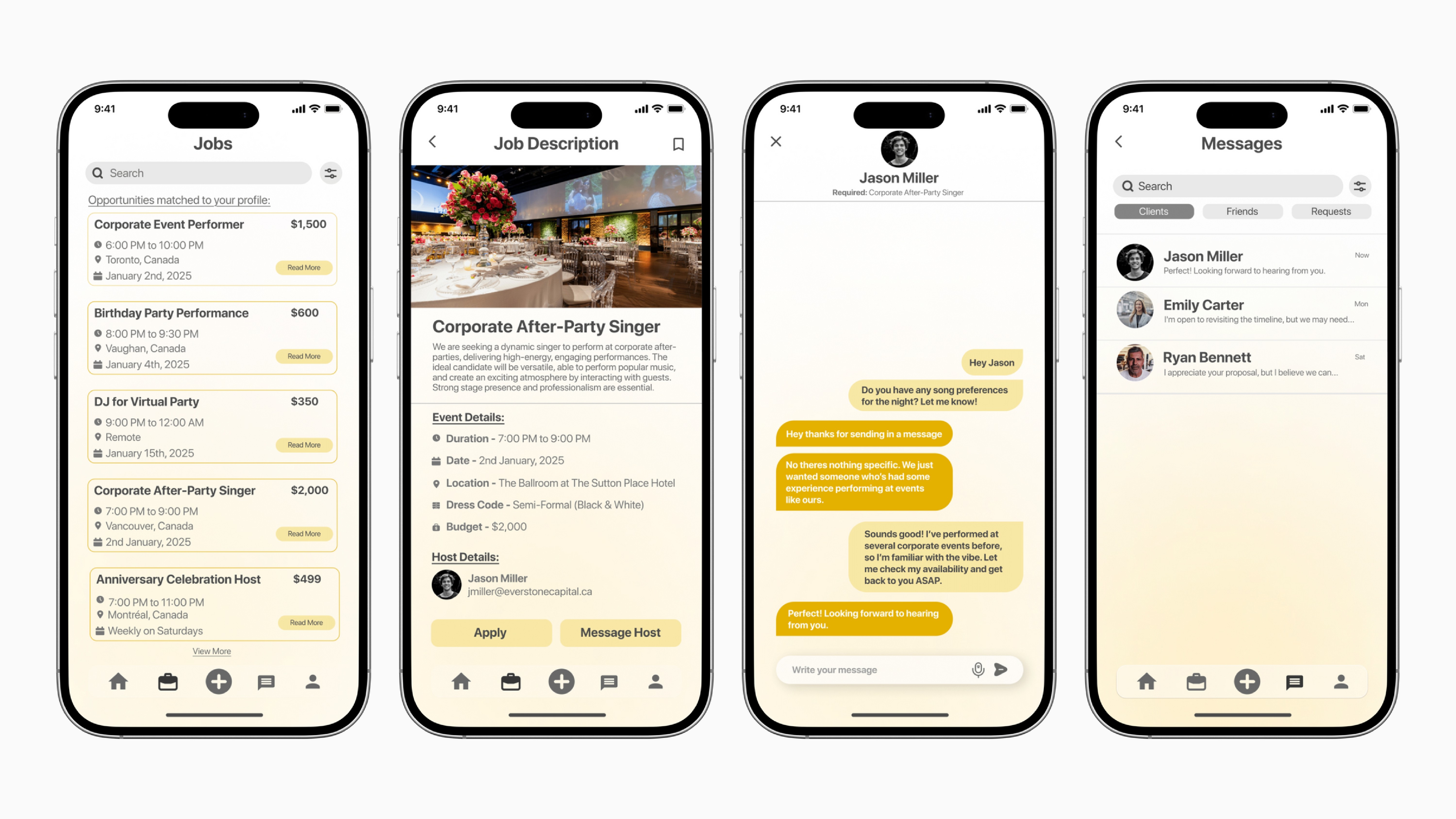 One key issue from user research was the difficulty of filtering creators by genre on existing platforms. My solution addresses this by categorizing users by their specific field within the performing arts, making it easier for creators to connect with others in similar areas.
