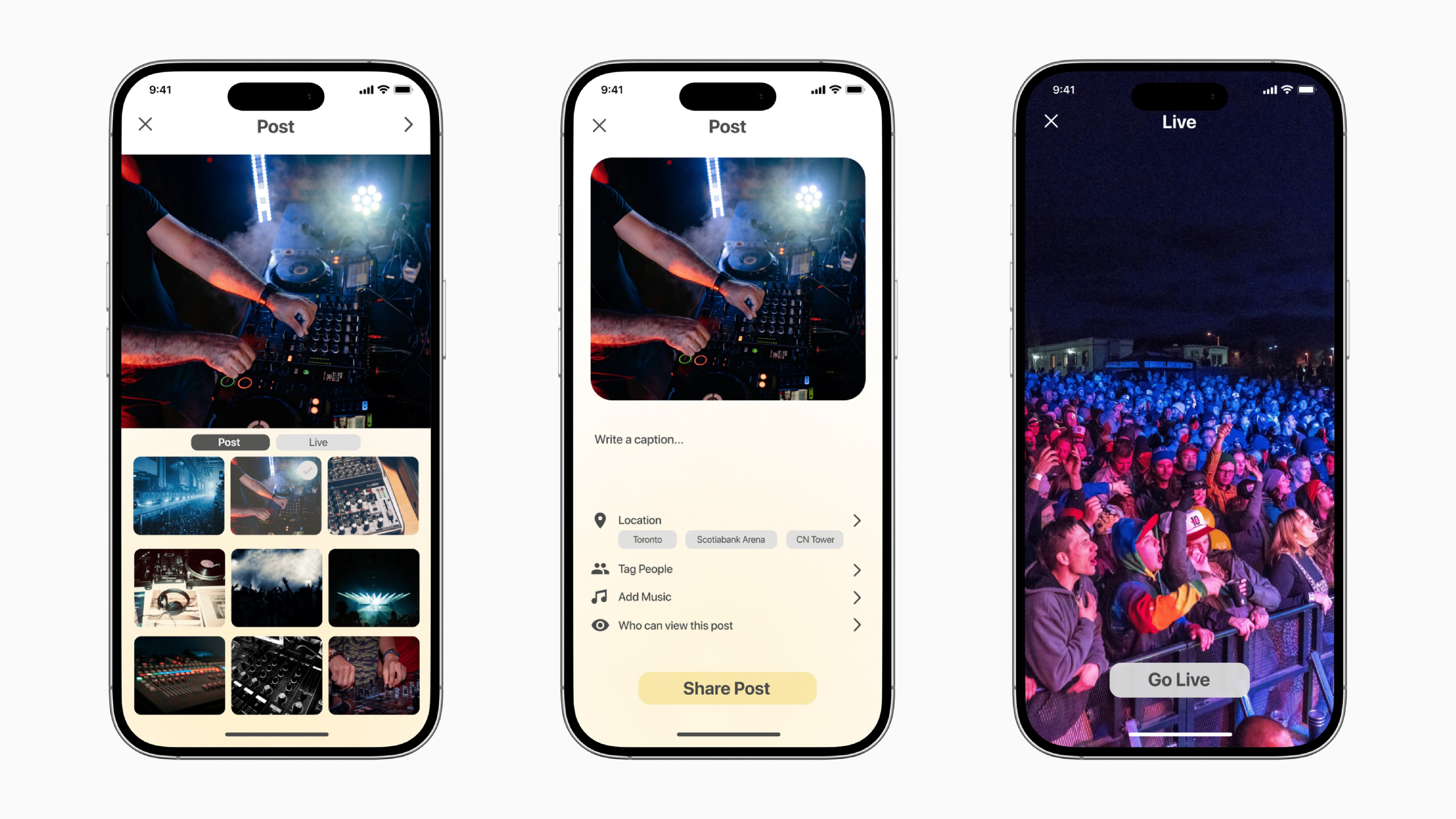 Absence of intuitive buttons for posting or live streaming.